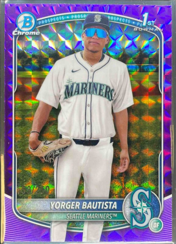 This card is 1 of 91 Yorger Bautista's card variations in the 2025 Bowman Chrome set being tracked by Sports Card Investor, including International Refractor Variation, Prospect Auto (1st), Prospect Auto - Black & White Shimmer Refractor (1st), Prospects (1st), and Prospects - Mini-Diamond Refractor (1st).