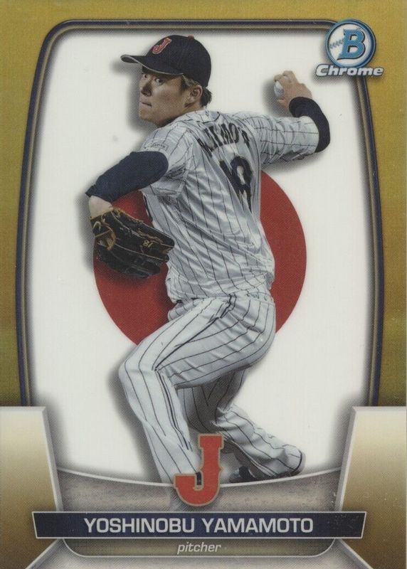 2023 Bowman Chrome Yoshinobu Yamamoto WBC Flag Variation Gold Refractor /50