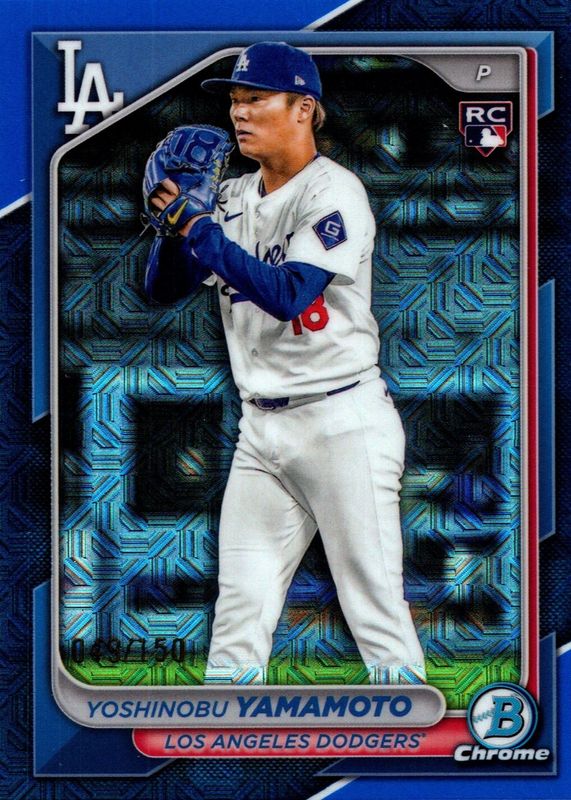 Yoshinobu Yamamoto 2024 Bowman Chrome Mega Box #73 Blue Mojo Refractor /150 Rookie RAW Price Guide