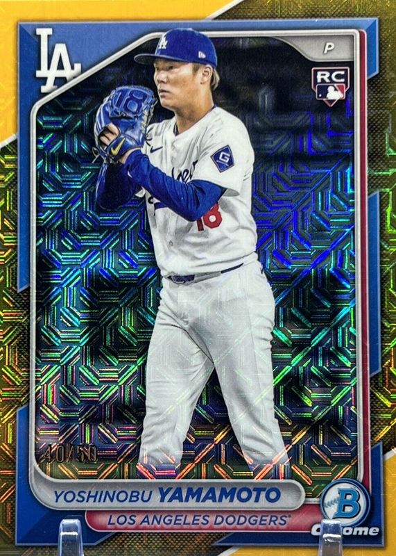 Yoshinobu Yamamoto 2024 Bowman Chrome Mega Box #73 Gold Mojo Refractor /50 Rookie RAW Price Guide