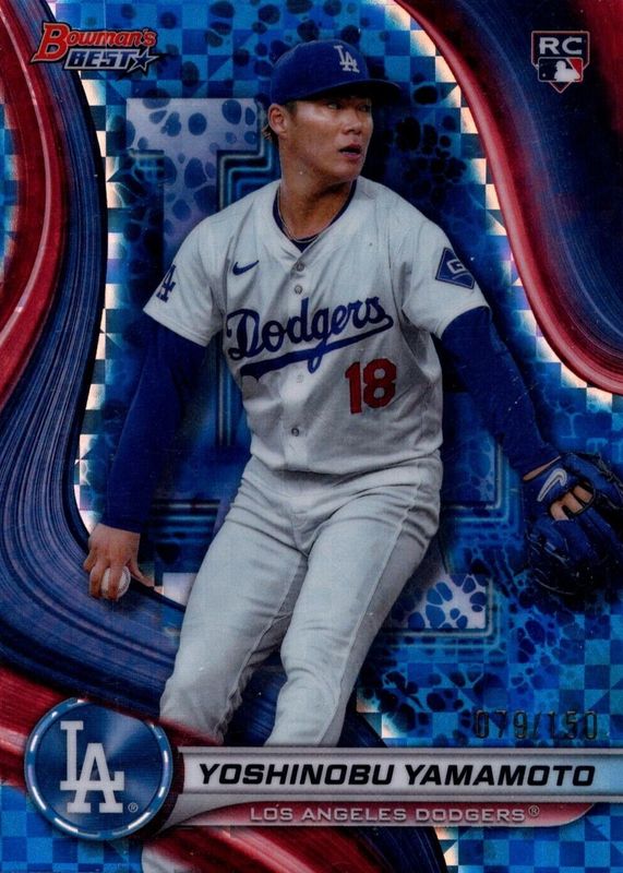 2024 Bowmans Best YOSHINOBU YAMAMOTO ROOKIE BLUE X FRACTOR 070/150 DODGERS