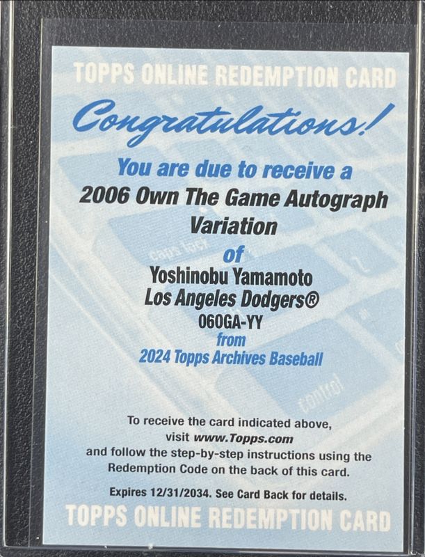 Yoshinobu Yamamoto 2024 Topps Archives #06OGA-YY 2006 Own the Game Autographs Rookie RAW Price Guide