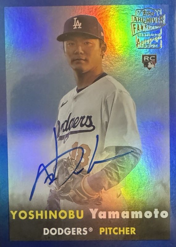 2024 Topps Archives Yoshinobu Yamamoto Fan Favorites Premium Auto Blue /25