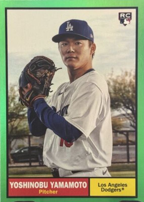 2024 Topps Archives 1961 Green Foilboard 77/99 Yoshinobu Yamamoto #61 Rookie RC