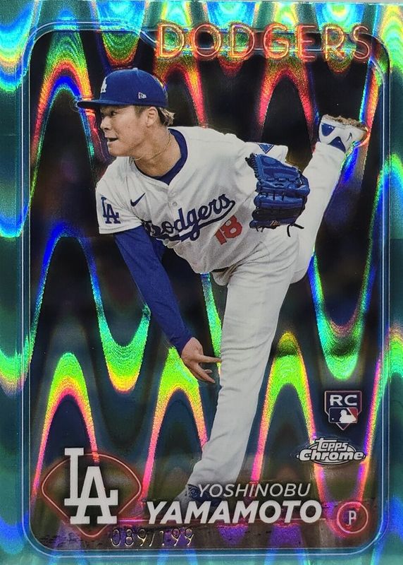 Yoshinobu Yamamoto 2024 Topps Chrome #18 Aqua RayWave Refractor /199 Rookie RAW Price Guide