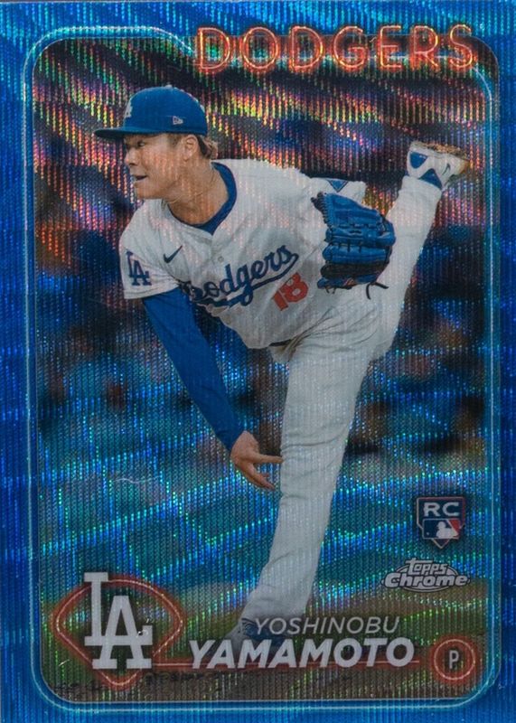 Yoshinobu Yamamoto 2024 Topps Chrome #18 Blue Wave Refractor /75 Rookie RAW Price Guide