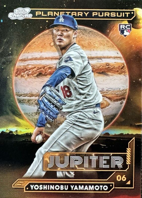 The Yoshinobu Yamamoto 2024 Topps Chrome Cosmic #PPJ-3 Planetary Pursuit - Jupiter Rookie card in Raw condition has not changed in price in the last 30 days and was last sold for $290.00 .