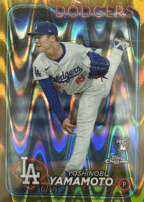 2024 Topps Chrome #18 Yoshinobu Yamamoto Gold Raywave 41/50 Rookie RC Dodgers