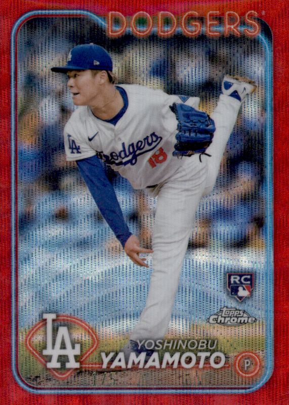 Yoshinobu Yamamoto 2024 Topps Chrome #18 Red Wave Refractor /5 Rookie RAW Price Guide