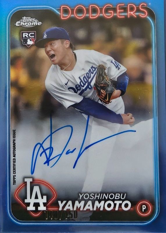 2024 Topps Chrome -Rookie Autographs Yoshinobu Yamamoto #RA-YY Blue/150 (AU, RC)