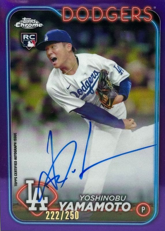 2024 Topps Chrome YOSHINOBU YAMAMOTO Purple Refractor AUTO 30/250 Rookie RA-YY