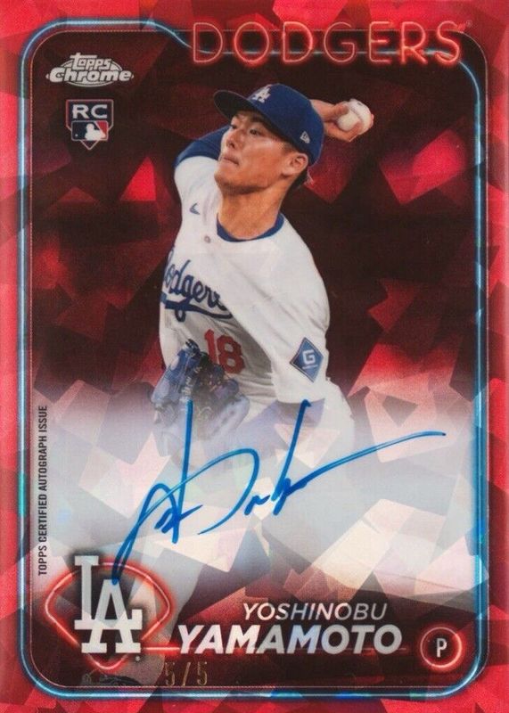 Yoshinobu Yamamoto 2024 Topps Chrome Update Sapphire Edition #USA-YY Autographs - Red /5 Rookie RAW Price Guide