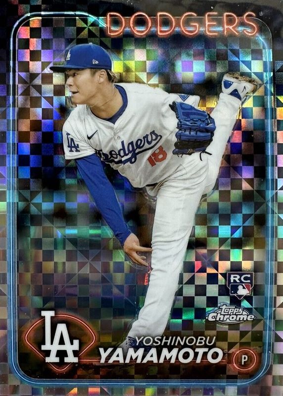 Yoshinobu Yamamoto RC: 2024 Topps Chrome CHECKERBOARD (XFRACTOR), #18, DODGERS!