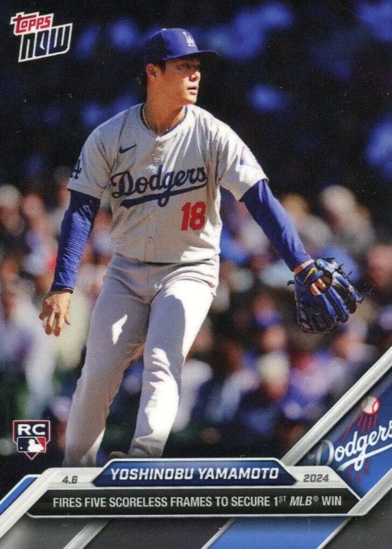 Yoshinobu Yamamoto 2024 Topps Now 5 Scoreless Frames To Secure 1st MLB WIN #42 B