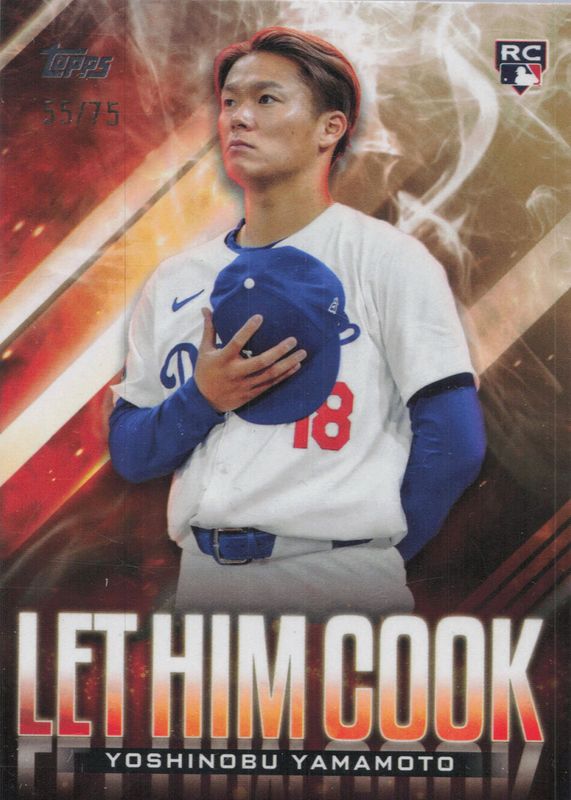 The Yoshinobu Yamamoto 2024 Topps Update #LHC-15 Let Him Cook - Gold /75 Rookie card in Raw condition has moved up $13.01 (+25.0%) in the last 30 days and was last sold for $65.00 .