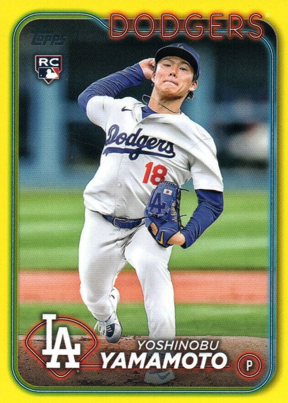 The Yoshinobu Yamamoto 2024 Topps #553 Yellow Rookie card in Raw condition has moved up $5.50 (+110%) in the last 30 days and was last sold for $10.50 .