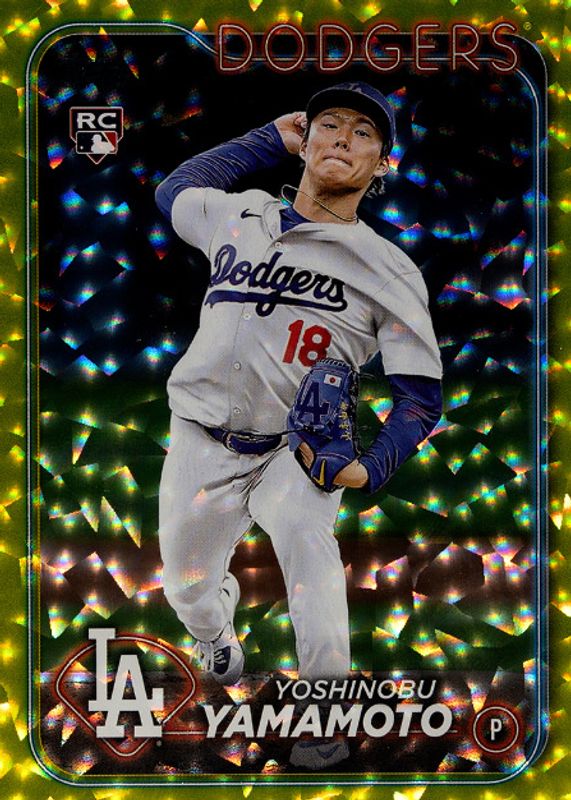 Yoshinobu Yamamoto 2024 Topps #553 Yellow Crackle Foilboard /50 Rookie RAW Price Guide