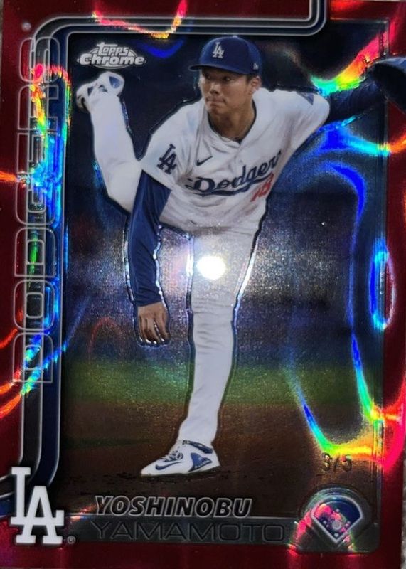 Yoshinobu Yamamoto 2025 Topps Chrome #179 Red Lava Refractor /5 RAW Price Guide