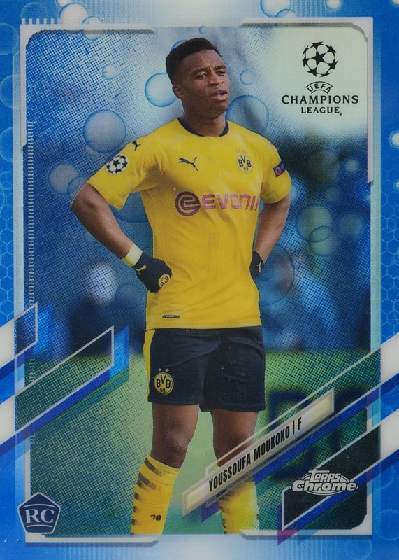 Youssoufa Moukoko 2020 Topps Chrome UEFA Champions League #55 Blue Bubbles Refractor Rookie RAW Price Guide