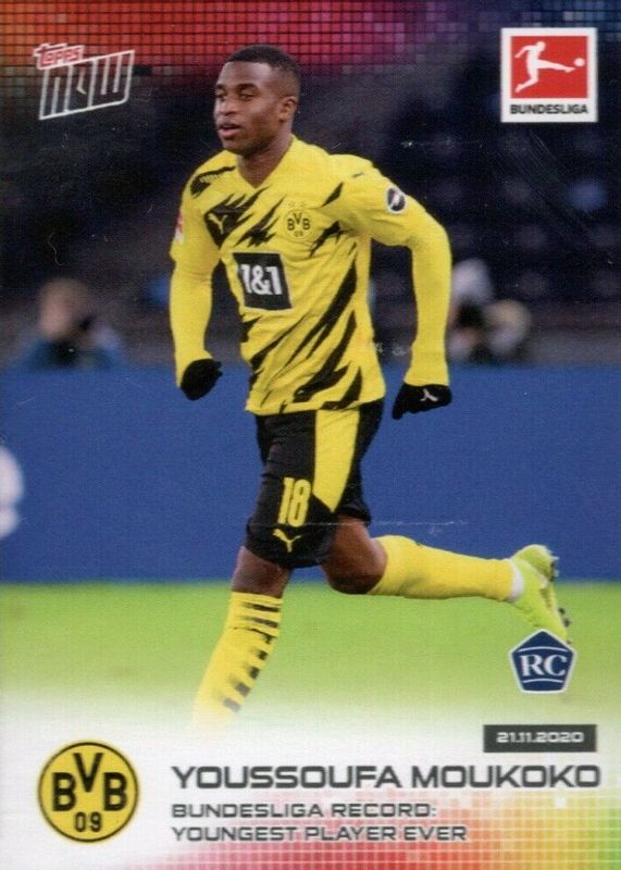 🔥📈🔥2020 TOPPS NOW BUNDESLIGA #45 YOUSSOUFA MOUKOKO -YOUNGEST PLAYER EVER