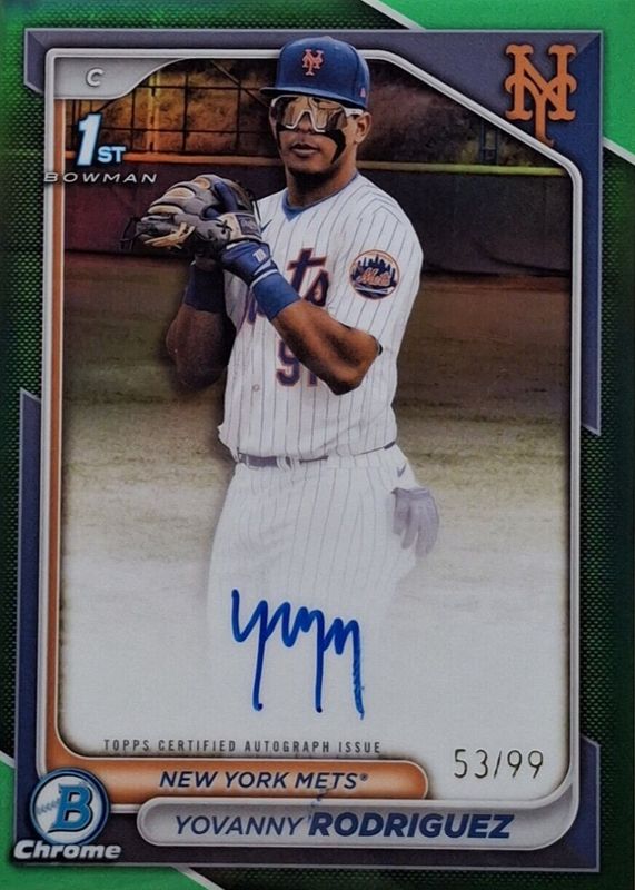 2024 Bowman Chrome Yovanny Rodriguez 1st Auto Green Refractor /99 NY Mets