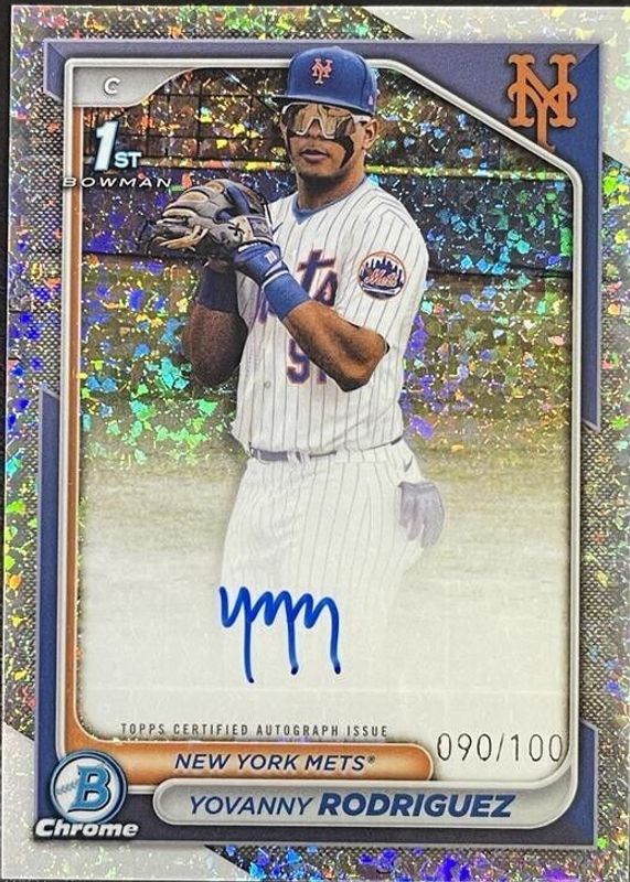 This card is 1 of 25 Yovanny Rodriguez's card variations in the 2024 Bowman Chrome set being tracked by Sports Card Investor, including Prospect Auto (1st), Prospect Auto - Refractor /499 (1st), Prospect Auto - Speckle Refractor /299 (1st), Prospect Auto - Purple Refractor /250 (1st), and Prospect Auto - Blue RayWave Refractor /150 (1st).
