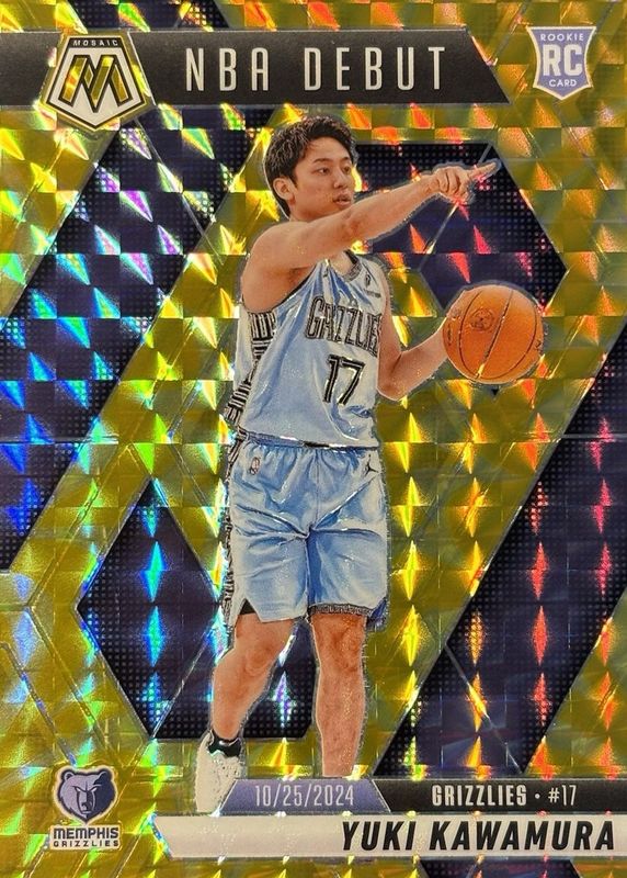 2024-25 Panini Mosaic NBA Debut RC Yuki Kawamura Yellow Reactive Prizm Grizzlies