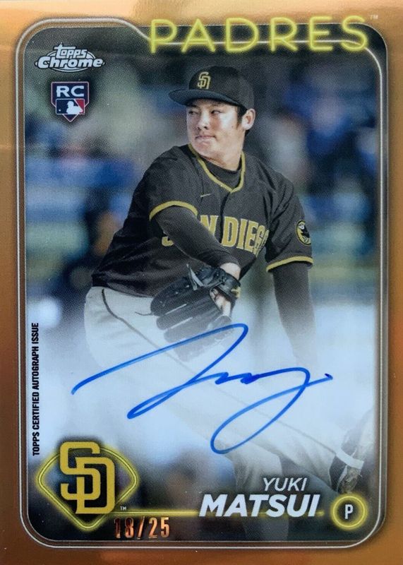 Best Prices Available For Sale of Yuki Matsui 2024 Topps Chrome #RA-YM Rookie Autographs - Orange Refractor /25