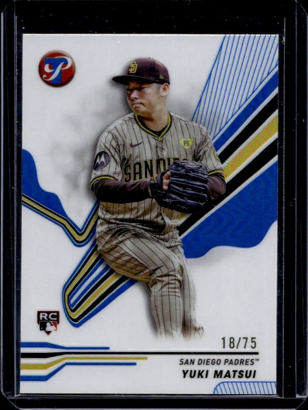 The Yuki Matsui 2024 Topps Pristine #234 Blue Refractor /75 Rookie card is 1 of 18 Yuki Matsui's card variations in the 2024 Topps Pristine set being tracked by Sports Card Investor, including Base, Pristine Refractor, Refractor, Green Refractor /150, and Pristine Purple Refractor /99.