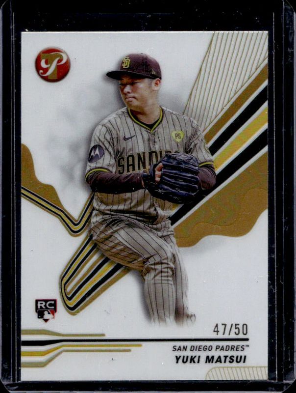 The Yuki Matsui 2024 Topps Pristine #234 Gold Refractor /50 Rookie card is 1 of 18 Yuki Matsui's card variations in the 2024 Topps Pristine set being tracked by Sports Card Investor, including Base, Pristine Refractor, Refractor, Green Refractor /150, and Pristine Purple Refractor /99.