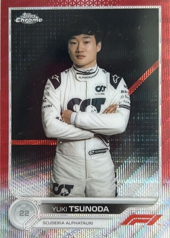 The Yuki Tsunoda 2022 Topps Chrome Formula 1 #61 Red Wave Refractor /5 card in Raw condition has not changed in price in the last 30 days and was last sold for $205.50 .