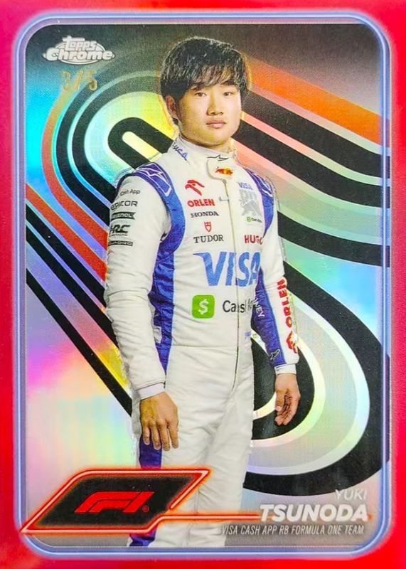 The Yuki Tsunoda 2024 Topps Chrome Formula 1 #17 Red Refractor /5 card in Raw condition has not changed in price in the last 30 days and was last sold for $80.00 .