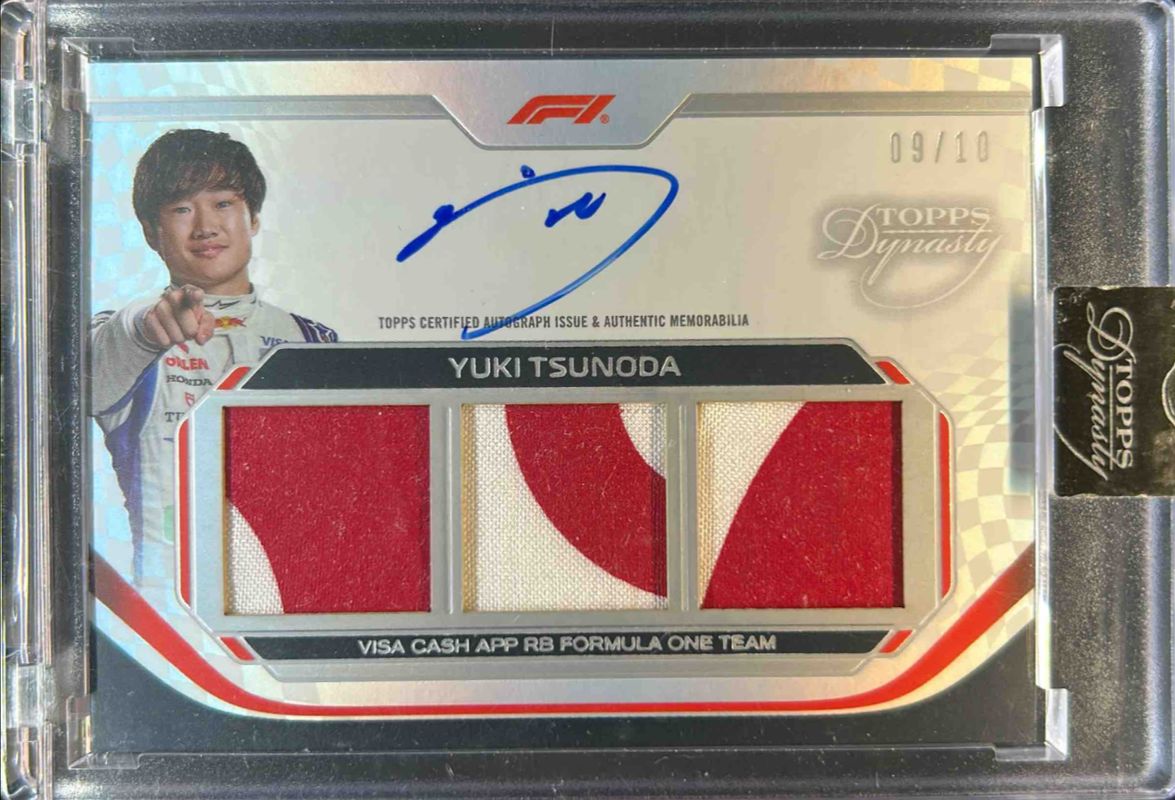 Yuki Tsunoda 2024 Topps Dynasty Formula 1 #SDTRA-YTS Single Driver Triple Relic Autographs /10 RAW Price Guide