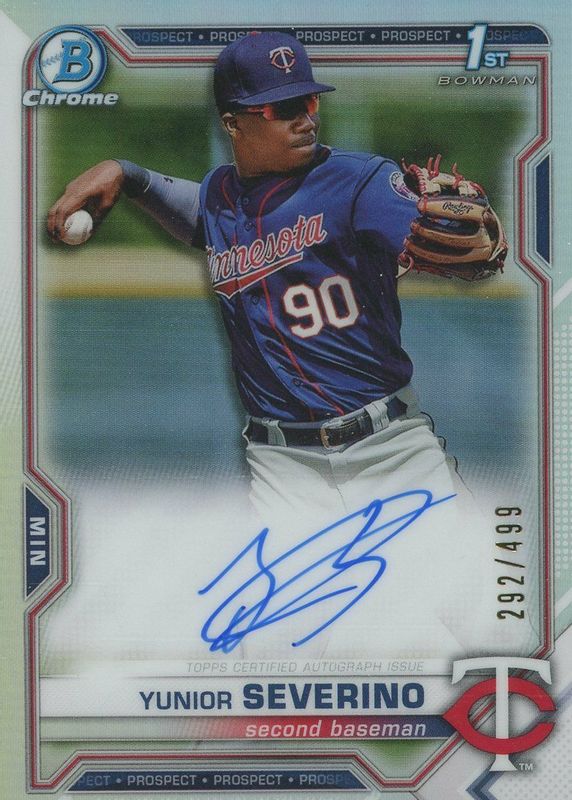 2021 Bowman Yunior Severino Chrome Prospect Auto Refractor Auto #475/499 Twins