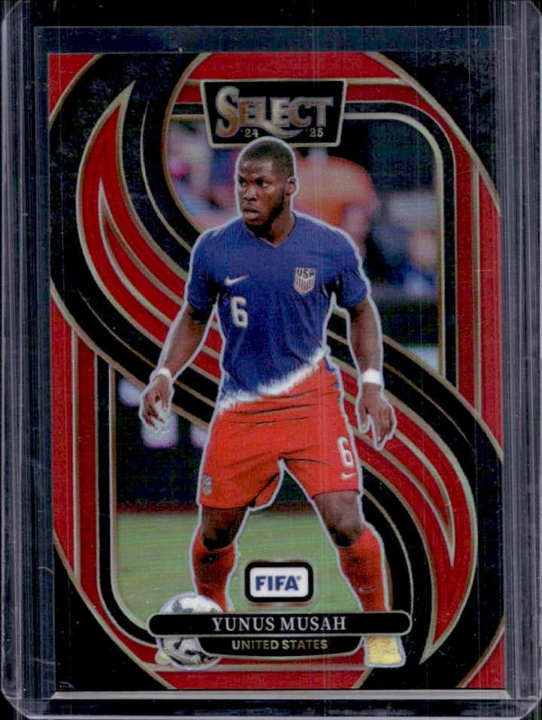 Yunus Musah's Soccer cards are available in at least 48 sets. Yunus Musah's biggest 7-day price movers are 2024 Select FIFA #199 Mezzanine Red, 2024 Prizm Copa America #153 Gold Wave /1, and 2024 Prizm Copa America #153 Zebra /(SSP).