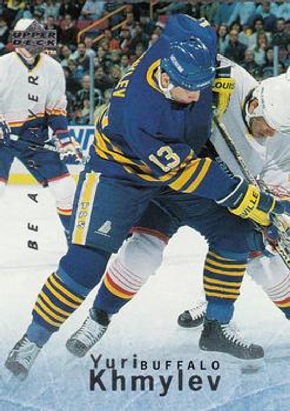 The Yuri Khmylev 1995 Upper Deck Be a Player #4 Base card is 1 of 3 Yuri Khmylev's card variations in the 1995 Upper Deck Be a Player set being tracked by Sports Card Investor, including Autographs, and Autographs die-cut.