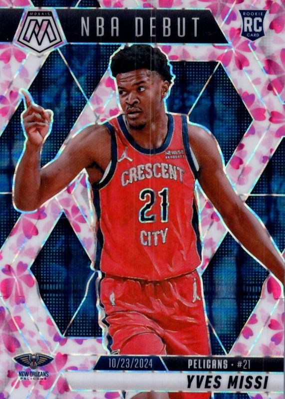 2024-2025 Panini Mosaic RC Cherry Blossom NBA Debut Yves Missi 11/20 Pelicans JJ