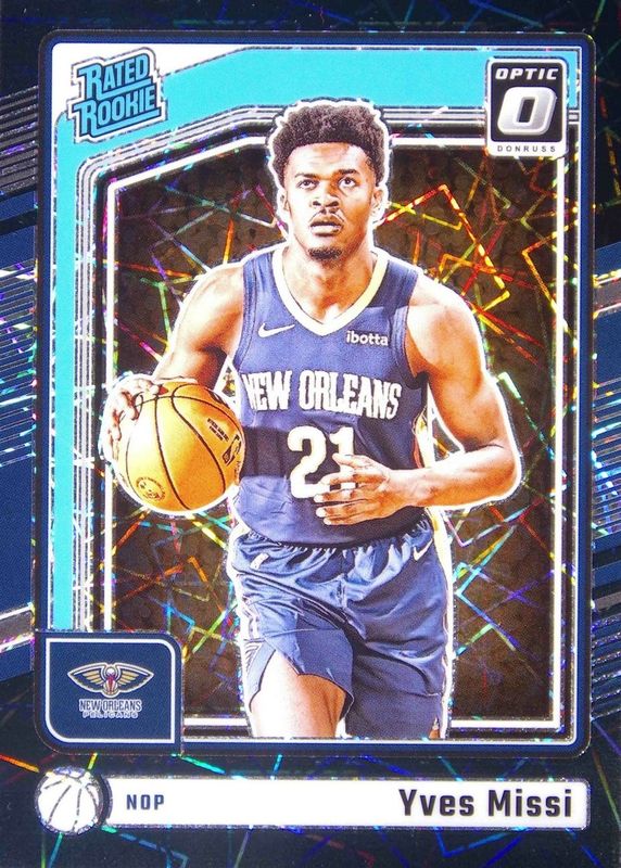 This card is 1 of 103 Yves Missi's card variations in the 2024 Optic set being tracked by Sports Card Investor, including Base, Blue Velocity, Checkerboard, Choice, and Fast Break.