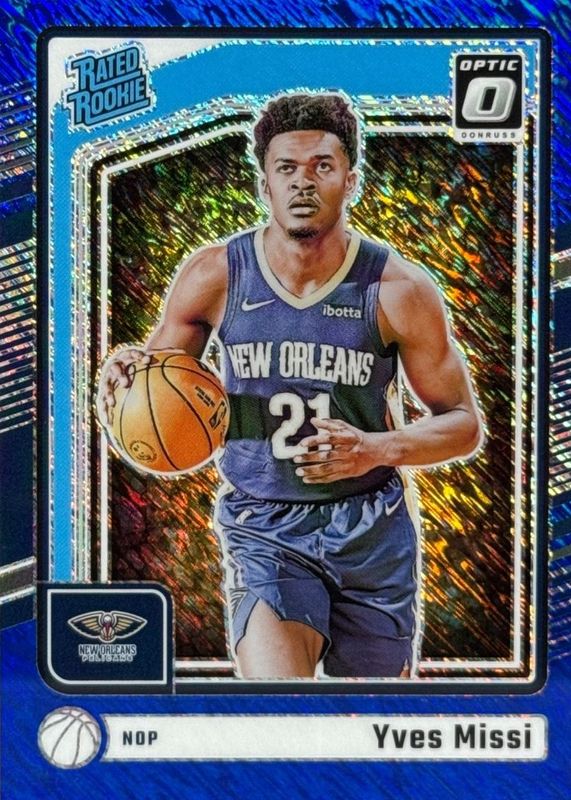 This card is 1 of 103 Yves Missi's card variations in the 2024 Optic set being tracked by Sports Card Investor, including Base, Blue Velocity, Checkerboard, Choice, and Fast Break.