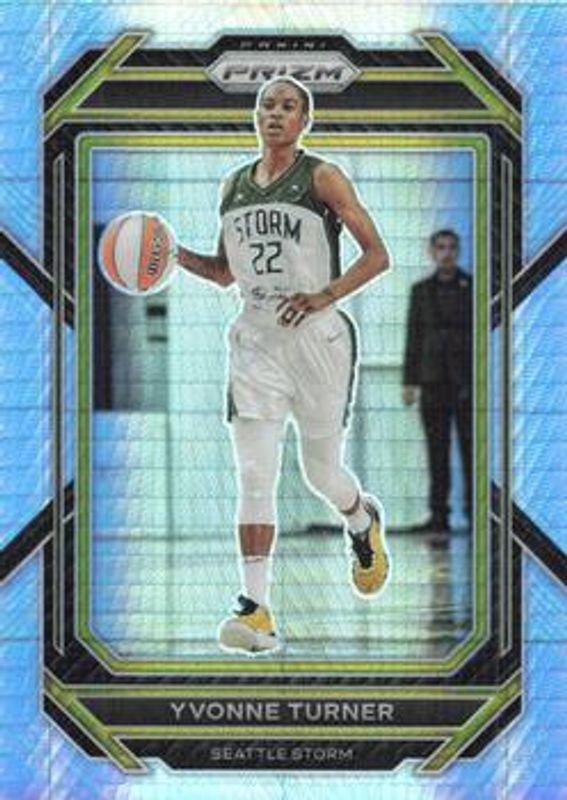 The Yvonne Turner 2023 Prizm WNBA #108 Hyper card is 1 of 21 Yvonne Turner's card variations in the 2023 Prizm WNBA set being tracked by Sports Card Investor, including Base, Blue Wave, Green, Ice, and Ruby Wave.