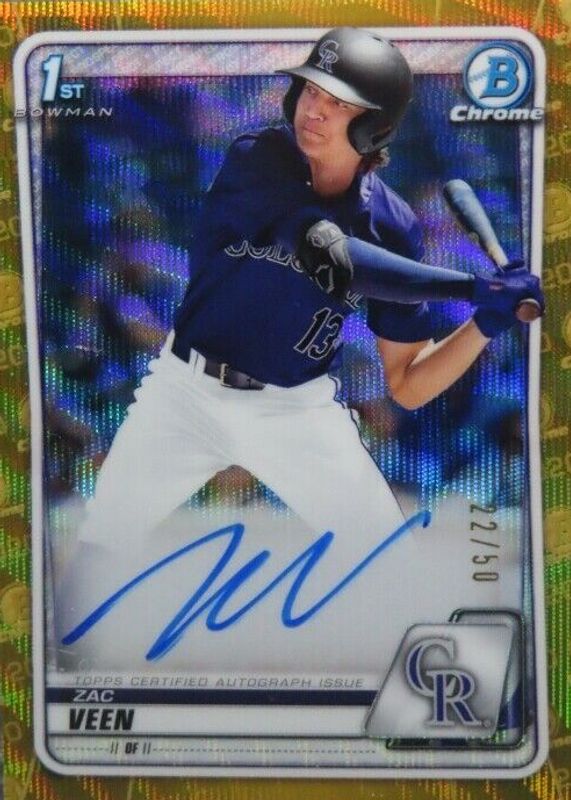 Auctions Ending Soon for Zac Veen 2020 Bowman Draft #CDA-ZV Chrome DP Auto - Gold Wave Refractor /50 (1st) RAW