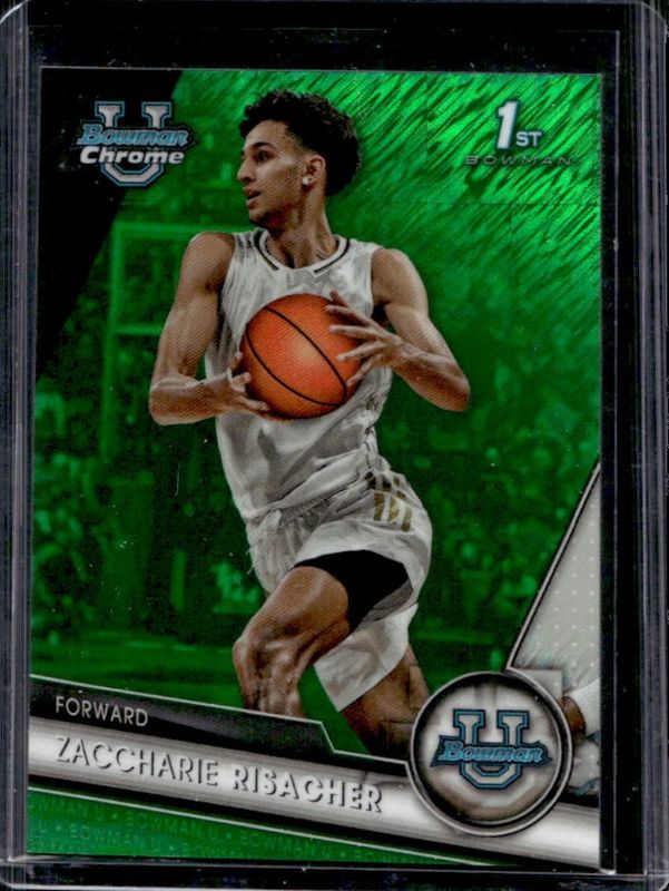 Zaccharie Risacher 2023 Bowman Chrome University #9 Green Shimmer Refractor /99 RAW