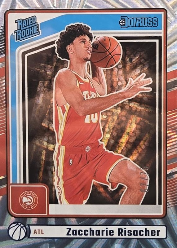 This card is 1 of 73 Zaccharie Risacher's card variations in the 2024 Donruss set being tracked by Sports Card Investor, including Base, Disco, Holo Green Laser, International, and International Holo Maroon Laser.