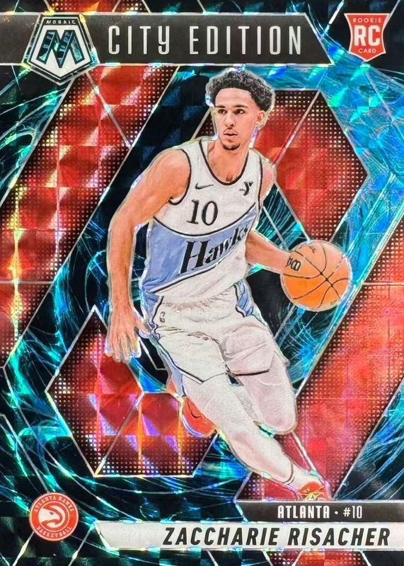 The Zaccharie Risacher 2024 Mosaic #274 City Edition - Genesis /(SSP) Rookie card in Raw condition has moved up $0.50 (+3.4%) in the last 30 days and was last sold for $15.00 .