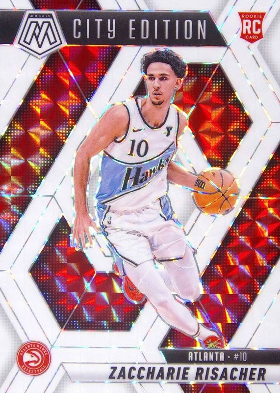 The Zaccharie Risacher 2024 Mosaic #274 City Edition - White /25 Rookie card in Raw condition has moved down -$10.50 (-35.1%) in the last 30 days and was last sold for $19.40 .