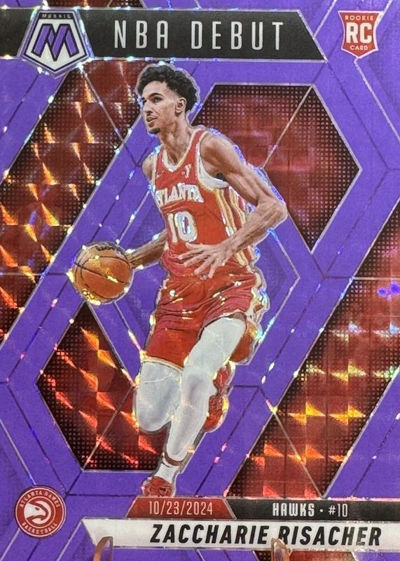 2024-25 Mosaic Zaccharie Risacher RC Purple Fluorescent NBA Debut #82/249 Hawks