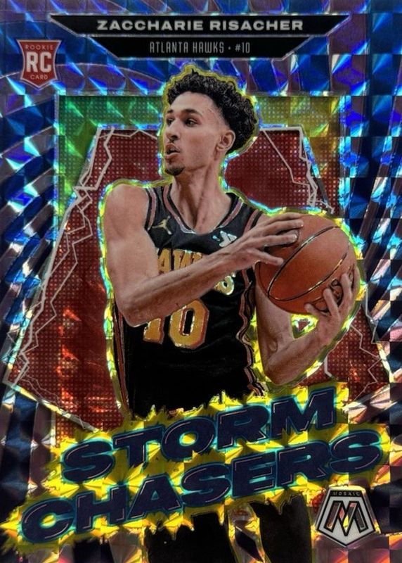 The Zaccharie Risacher 2024 Mosaic #18 Storm Chasers /(SSP) Rookie card in Raw condition has moved down -$3.01 (-75.3%) in the last 30 days and was last sold for $0.99 .