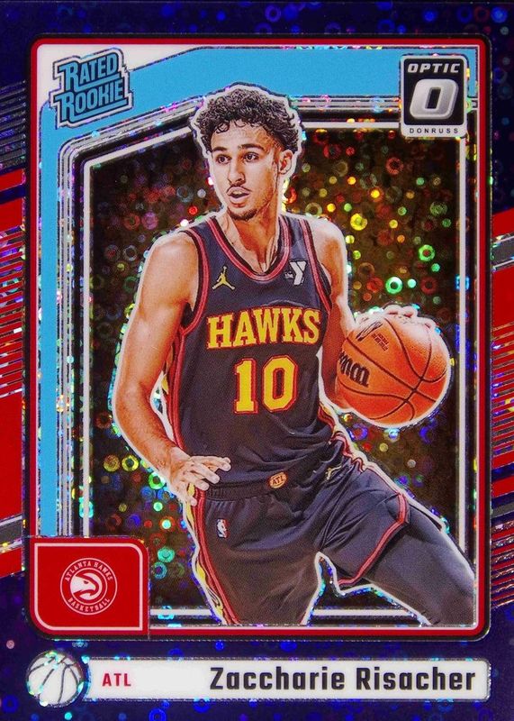 This card is 1 of 219 Zaccharie Risacher's card variations in the 2024 Optic set being tracked by Sports Card Investor, including Base, Blue Velocity, Checkerboard, Choice, and Fast Break.