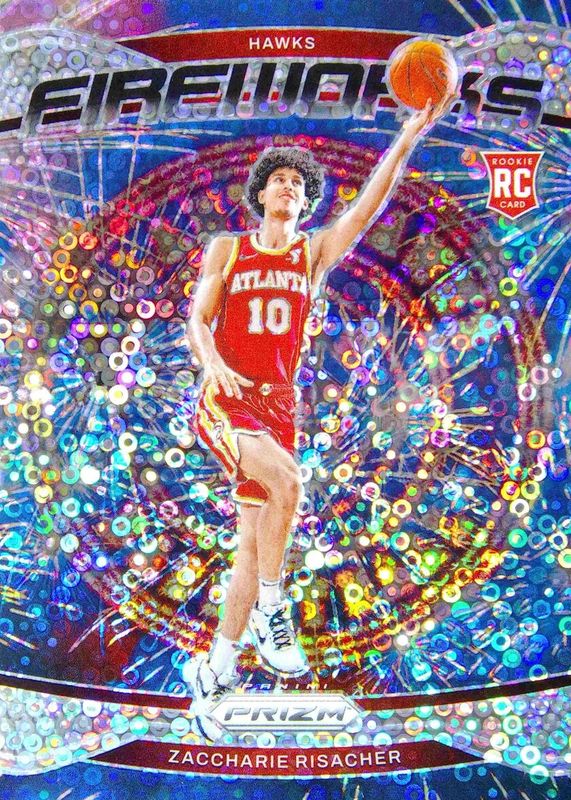 The Zaccharie Risacher 2024 Prizm #6 Fireworks - Fast Break Rookie card in Raw condition has not changed in price in the last 30 days and was last sold for $3.23 .