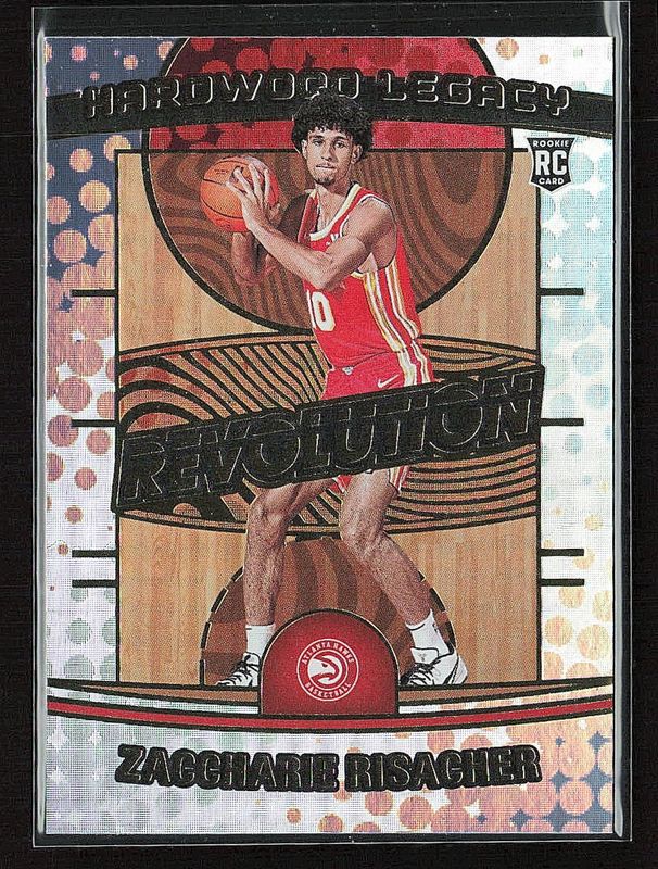 The Zaccharie Risacher 2024 Revolution #21 Hardwood Legacy Rookie card is 1 of 112 Zaccharie Risacher's card variations in the 2024 Revolution set being tracked by Sports Card Investor, including Base, Astro, Blue Storm, Chinese New Year, and Fractal.